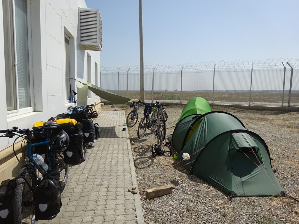 Am Freitag holen wir unsere Usbekistan-Visa ab. Max‘ Visum wurde einfach kurz handschriftlich korrigiert.. der Name ist nicht korrekt geschrieben.. 😀 Wir werden sehen ^^ Gegen 13 Uhr machen wir uns dann auf zum Hafen.. 70 km, einige Zeit schief gegen den Wind gelehnt, der einem Sand und kleine Kiesel in die Ohren und an den Koerper schleudert. Danach haben wir aber besten Rueckenwind und die Fahrt in der Hitze auf der Hauptstrasse laesst sich ganz gut ausshalten.