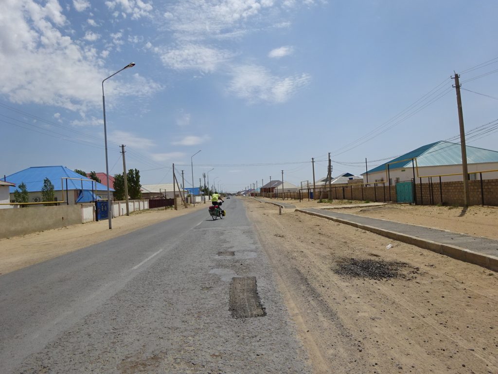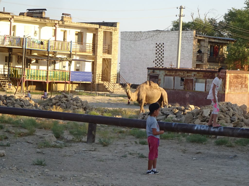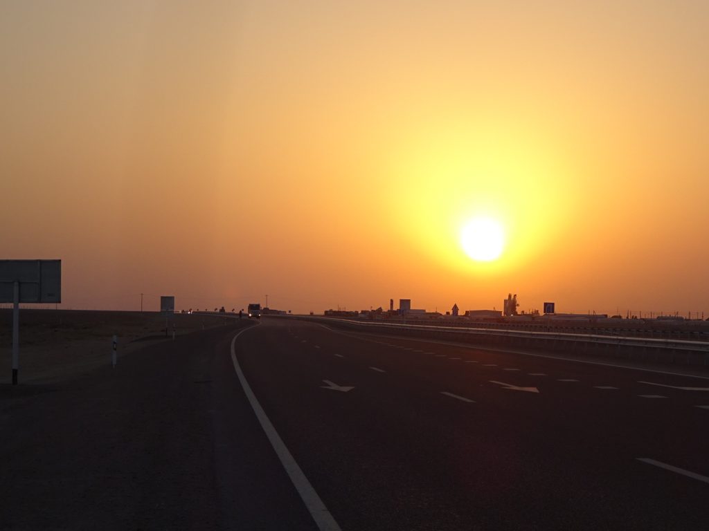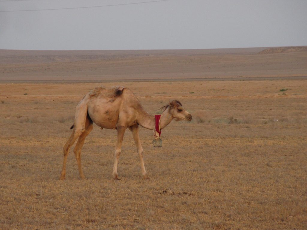Viele Gruesse aus Beyneu, an der Grenze zu Usbekistan. Die letzten Tage haben wir uns durch die kasachische Steppe gequealt. Navigation? Unnoetig, es geht immer geradeaus und es gibt nur eine Strasse.. Schatten? Selten, nur an schoenen Orten wie Bushaltestellen oder Strassenunterfuehrungen.. Dafuer gabs viele Kamele und Pferdeherden 🙂