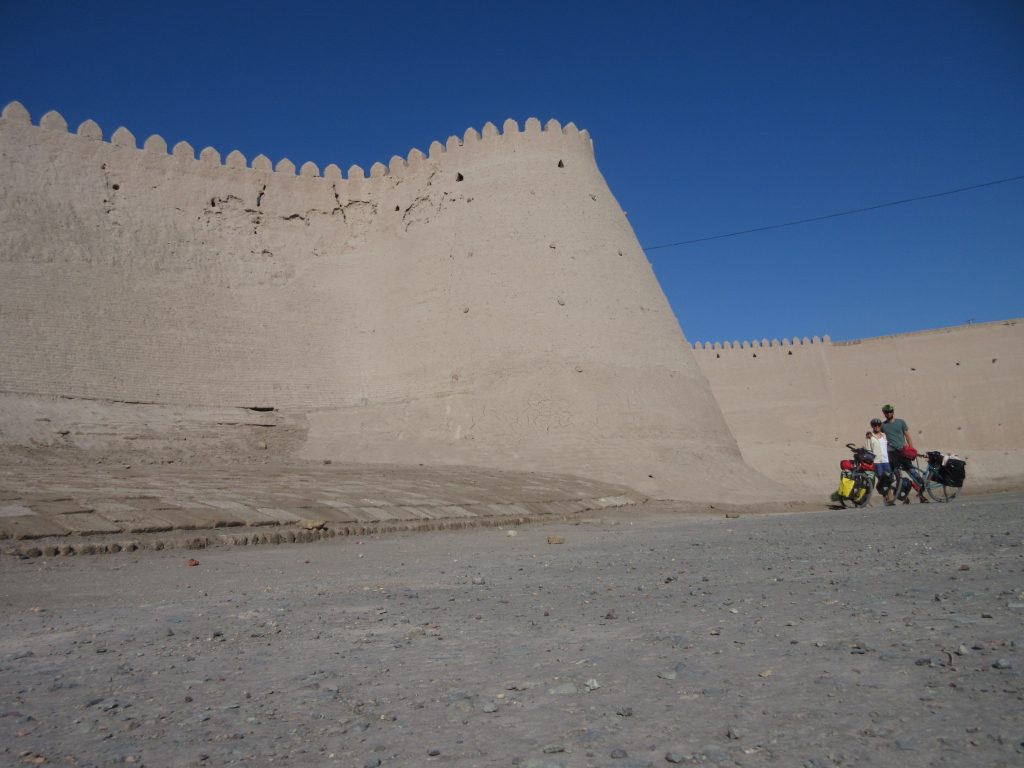 Aus Khiva sind wir am Morgen aufgebrochen, nach Urgench, um dort am gleichen Nachmittag noch den Zug nach Bukhara zu nehmen.. Pustekuchen ^^ In Urgench angekommen (gegen 11, der Zug sollte um 16 Uhr abfahren), fahren wir gleich zum Bahnhof, bzw. zum Ticketoffice, das sich in einem extra Gebäude befindet..Hier herrscht wieder wilder Trubel, verschiedenste Schalter mir Menschentrauben davor..kurz stehen wir am falschen Schalter, dann werfen wir uns die richtige Menschenmenge. Wieder heißt die Devise: „Klemm dich schön dicht an den Vordermann und erkämpfe dir einen Platz am Schalterbrett“. Alle werfen der Frau hinter dem Tresen einen Packen Ausweise zu, kurze Diskussion, dann erfolgt der Ticketkauf. Auch wir knallen unsere Ausweise aufs Tableau, darauf warten, dass man dazu aufgefordert wird könnte man lange.. Nach kurzer Verwirrung steht fest, dass wir erst am folgenden Tag den Zug nehmen können. Bezahlung in Sum (Dollar oder Sum, das ist immer so eine Frage^^), ich flitze nochmal schnell zu den Rädern um den Geheimvorrat zu holen, und dann haben wir unsere Tickets, und die Frau gibt uns noch einen Extrazettel, auf dem Daten, Uhrzeiten, Wagon und Sitze notiert sind. Nun suchen wir uns ein Hotel im wirklich langweiligen Urgench und legen uns mal wieder ins Bett 😀