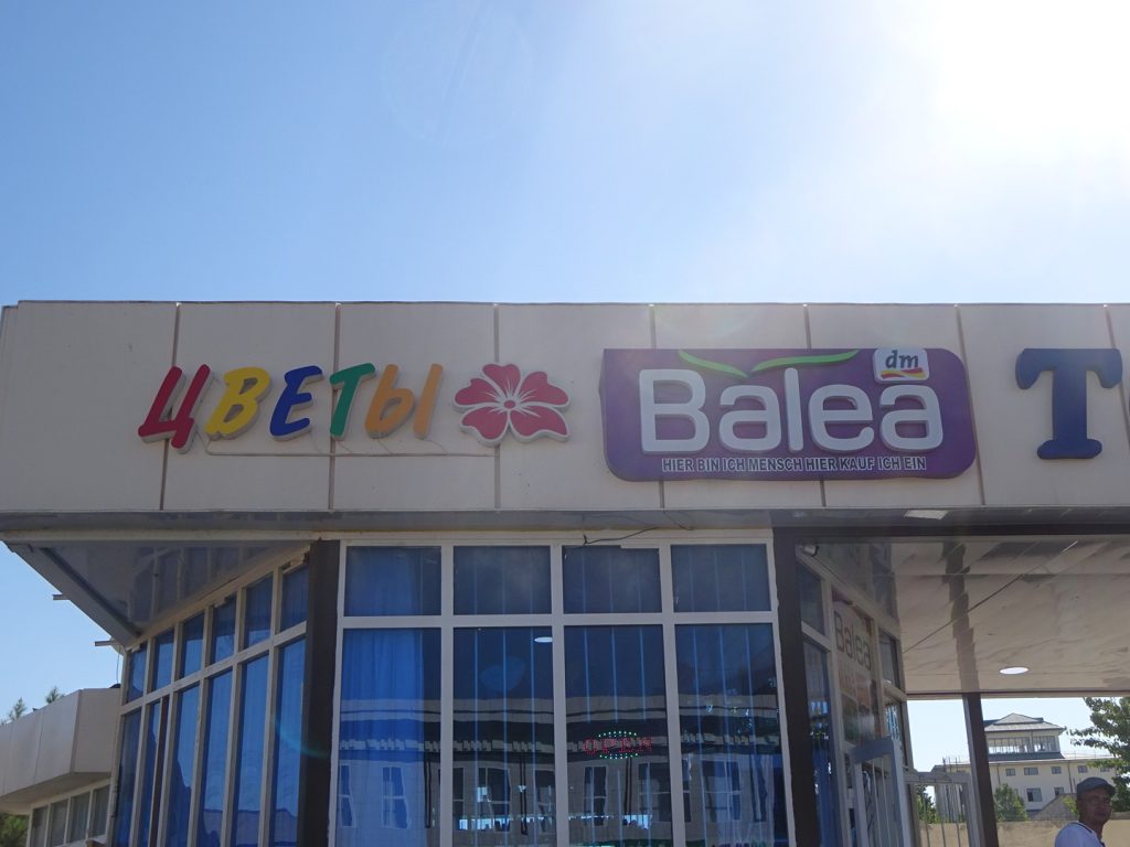 Nächster Zwischenstopp ist Schumkent. Hier kauft sich Max neue Kopfhörer und bekommt 5 SIM Karten inklusive Guthaben (3 mal 10 GB :D) dazu geschenkt. Coole Sache!! Dann suchen wir uns ein schickes Café mit echtem Kaffee. Der Besitzer ist ganz begeistert uns zu sehen, war selber vor kurzem auf Europa-Reise und zeigt uns stolz Macchiato-Schokolade („chocolate with macchiato!!!“), die er in Frankfurt gekauft hat :D. Er spricht gut englisch, und so ist ein nicht nur rudimentäres Gespräch möglich. Am Ende machen wir noch einige Fotos vor und in seinem Café und unsere Getränke und Donuts gehen aufs Haus. Bombig :). Wir fahren dann weiter, wieder raus aus der fast-Millionenstadt, kapitulieren irgendwann vor dem immer stärker werdenden Gegenwind und zelten auf einem Acker.