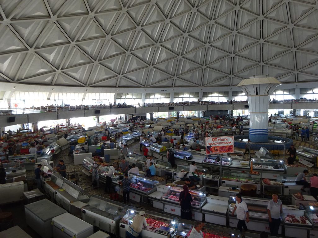 Noch sind wir nach alter Manier immer recht früh morgens unterwegs. Wenn wir so gegen 7 an den zahlreichen Straßenständen vorbei fahren, sieht man die Verkäufer auf einem Bett direkt hinter dem Stand schlafen..ganz schön krass. Es ist für uns auch schon normal, Kinder (vll. 7+ J.) als Schafshirten, Kuhhirten oder Eselskarrenfahrer zu sehen. Nach 3,5 Tagen erreichen wir Taschkent, flächenmäßig riesig, super viel Verkehr, aber trotzdem irgendwie ein großes Dorf. Am nachmittag machen wir uns mit den Rädern auf ins Stadtzentrum (sehr anstrengend zu fahren, riesige Straßen mit unüberwindbaren Mittelstreifenbauten), schauen uns den Basar an und dann gehen wir noch was essen und zwar NUDELN in einem fast-italienischen Restaurant ^^