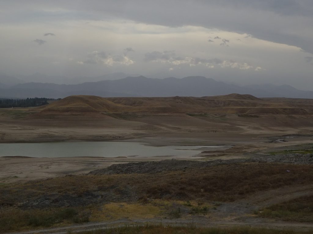 Am nächsten Morgen habe ich mal wieder einen Platten.. mittlweile haben wir aufgehört zu zählen. Einmal hatten Max und ich am selben Tag je einen Platten im Vorderreifen, die Mäntel sind nun nicht mehr so haltbar wie noch am Anfang..Heute steuern wir einen See an und fahren dafür auch einen kleinen Umweg. Auf der einen Seite ist allerdings militärisches Sperrgebiet, so dass wir unsere Mittagspause dann doch in einem kleinen Hain statt am/im See zu verbringen. Unsere Wasserplanung war auch ein bisschen geizig, so dass das geplante Nudelkochen dann ausfällt. Gegen 16 Uhr fahren wir weiter, umrunden den See (krasser Gegenwind, aber wir fahren zum Glück ein Stück entgegen der eigentlichen Fahrtrichtung). Danach geht es leicht bergab und wir haben kräftigen Rückenwind, sodass wir spontan beschließen, heute gleich schon bis nach Taras (letzte Station vor Kirgistan) zu fahren. Ab in ein Hostel, in dem wir die einzigen Gäste sind.