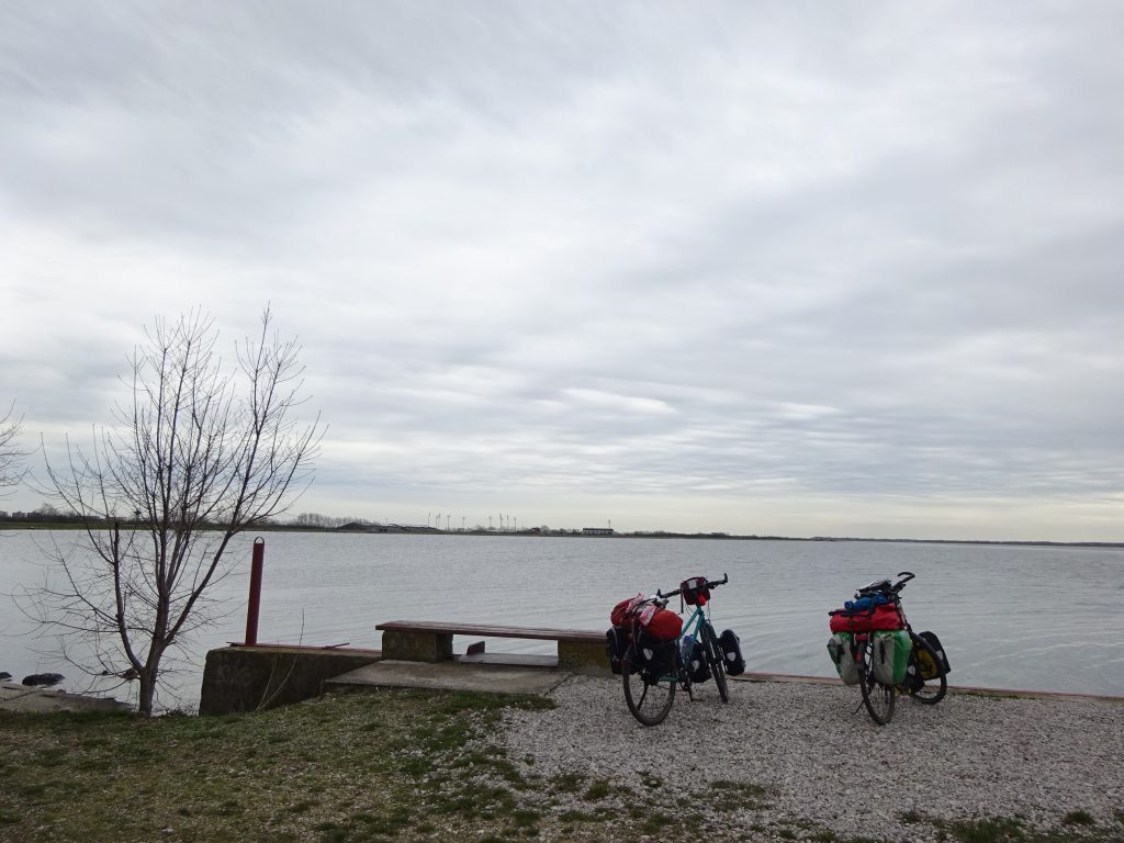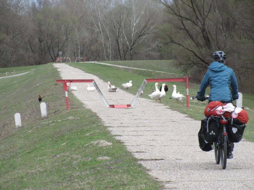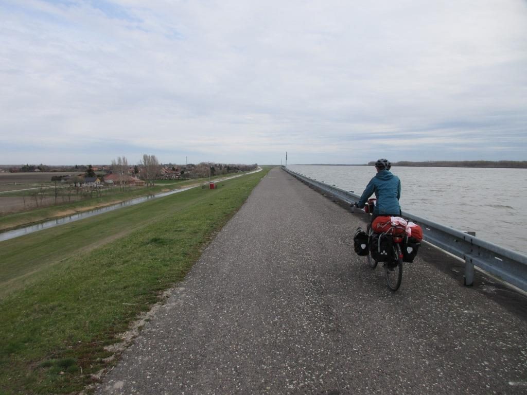 Weiter geht’s! Am nächsten morgen fahren wir die letzten 8 km bis nach Bratislava. Gucken uns ganz kurz ein wenig die Altstadt an und fahren dann gleich weiter (Hummeln im Hintern ;)). Immer weiter den Donauradweg entlang, der streckenweise ganz schön öde anmutet.. grauer Himmel, braun/graue Bäume ohne Blätter und der Weg geht schnurstracks geradeaus.. Haben aber ziemlichen Rückensturm und so geht’s mit Spitzengeschwindigkeiten von bis zu 29 km/h einem unbekannten Ziel entgegen. Gegen 18:00 landen wir in Klizka nema in einer Kneipe, dürfen unser Zelt davor aufschlagen. Pizza, Bier und W-Lan 🙂