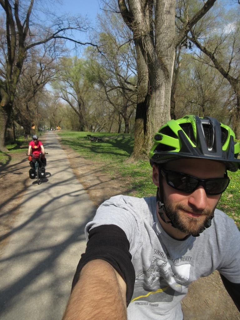 Am nächsten Morgen werden die Räder noch ein bisschen gepflegt (nach dem Frühstück natürlich) und dann fahren wir Richtung Szentendre. Die Stimmung ist so lala, wir pampen uns gegenseitig an, warum auch immer 😉 Der Donauradweg ist wieder schön an der Donau gelegen ohne Straßenbetrieb, dafür sind ein Haufen Sonntagsausflügler unterwegs. Ganz ungewohnt für uns, da wir die letzten Tage oft ganz allein auf dem Radweg unterwegs waren. Man merkt allerdings, dass die Bäume jeden Tag ein bisschen grüner werden.