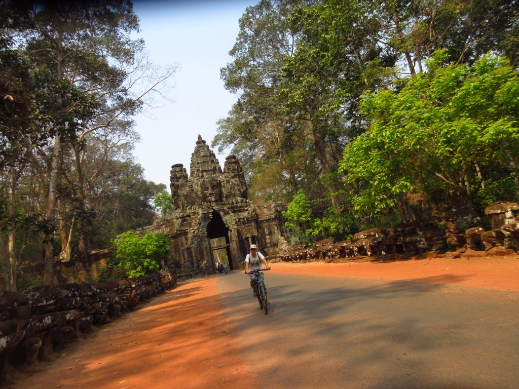 So sind wir 5 Radfahrtage später in Siem Reap, eine Touristadt ganz in der Nähe der großen Tempelanlagen um Angkor Wat. Unser Guesthouse hier ist sehr gemütlich und heute sind wir schon den 6. Tag hier 🙂 An drei Tagen haben wir morgens bis mittags die Tempel besichtigt (sehr schön, auch wenn einem ständig irgendwelche Touristen ins Bild töffeln). Hier nur ein paar Bilder, hier könnten wir sooo viele Fotos hinspammen 😉 Die Tempelanlagen um Angkor sind wirklich riesig. An unserem 2. Besichtigungstag fahren wir gute 30 km innerhalb der Anlage, viele Tempel stehen im Wald (schön schattig), andere wieder auf freier Fläche (Sonnenstich). Gebaut wurden die meisten Tempel im 12. Jhd, die religiöse Ausrichtung wandelte sich von hinduistisch zu buddhistisch. Irgendwann im Laufe der Zeit wurden die Tempel vergessen und der Wald übernahm das Zepter 🙂 Westliche Historiker, die zu Beginn der Kolonialisierung (Ende 19. Jhd.) die Tempelanlagen besichtigten, datierten ihren Ursprung kurzerhand in die Antike, konnten doch diese Untermenschen eine solche Anlage unmöglich gebaut haben…