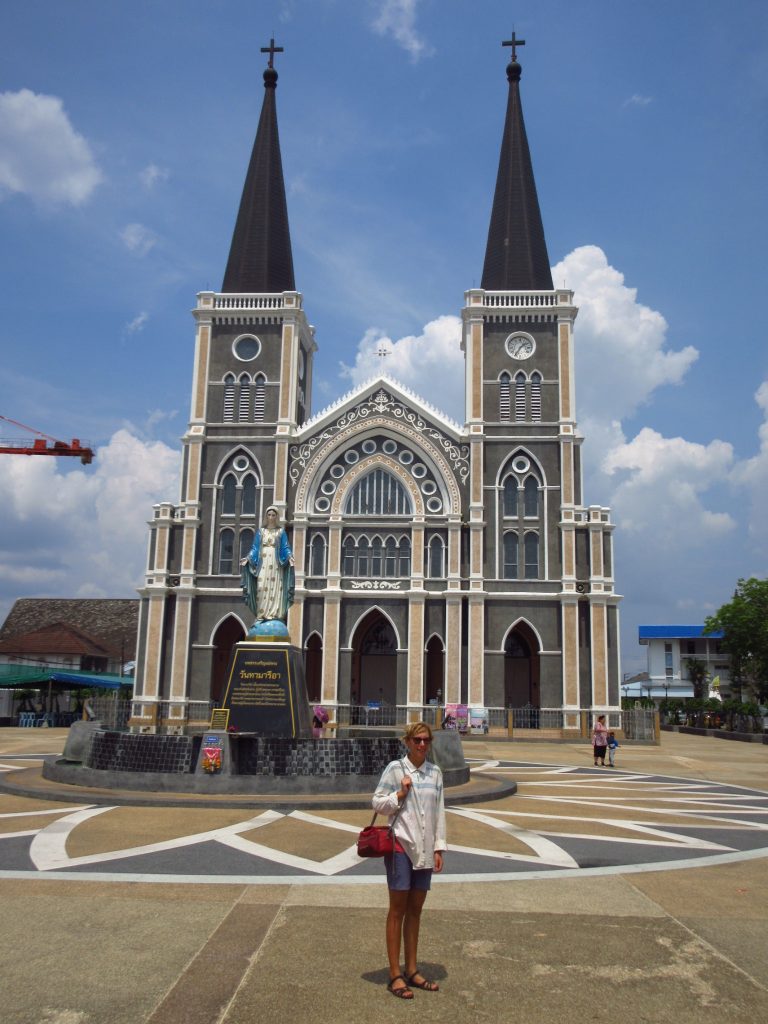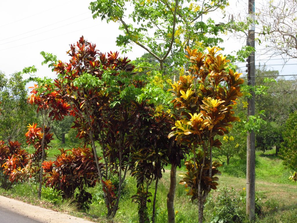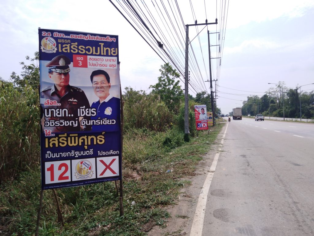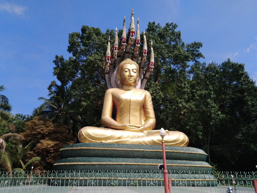 Hinter der Grenze kommt uns ein Polizeiroller auf unserer Seite entgegen, wir wundern uns da nicht mehr.. Bis Max dann bemerkt, dass hier Linksverkehr herrscht 😀 hupsi^^ Die Landschaft ist nun deutlich grüner, Plantagen von Ananas, Mangosteen, Durian & Gummibäumen wechseln sich ab, dazwischen immer wieder Wahlplakate und Pestizidwerbung..