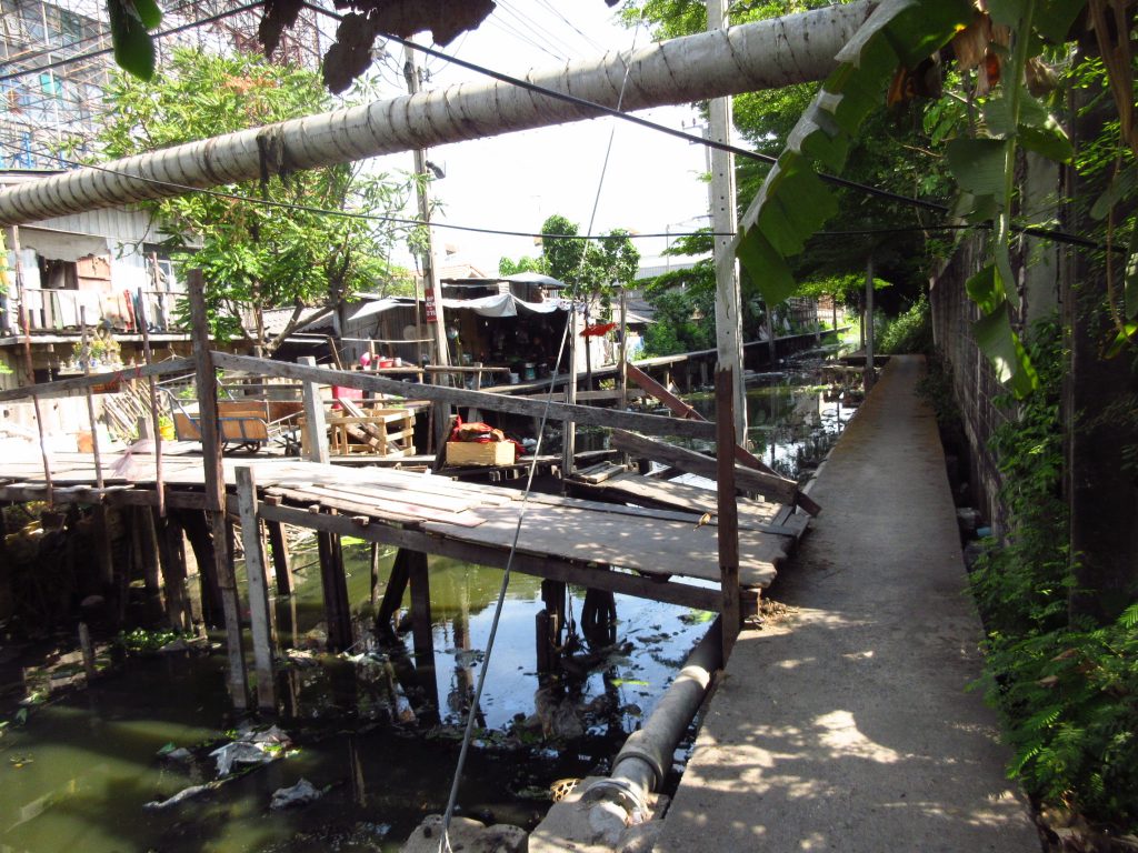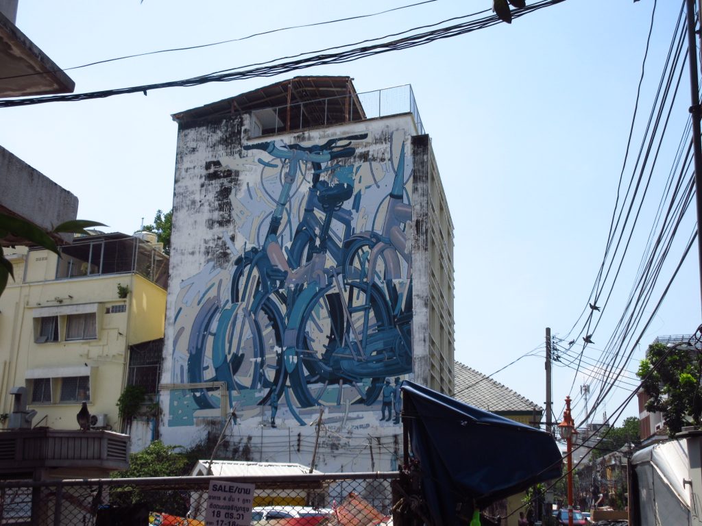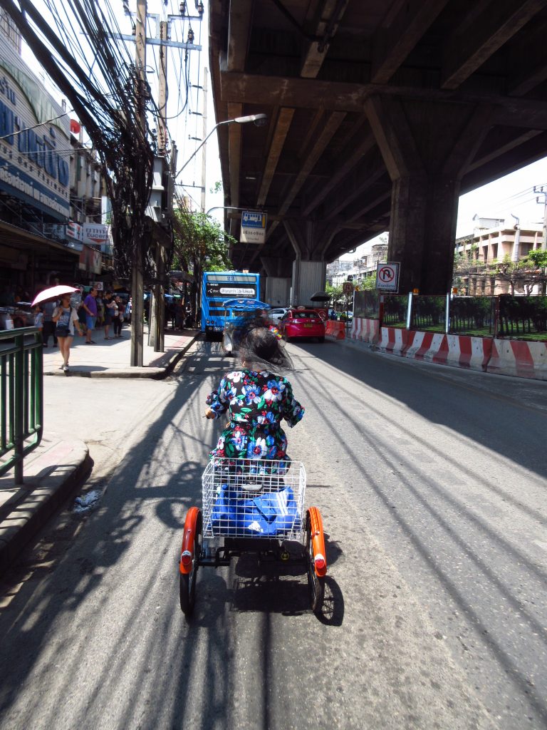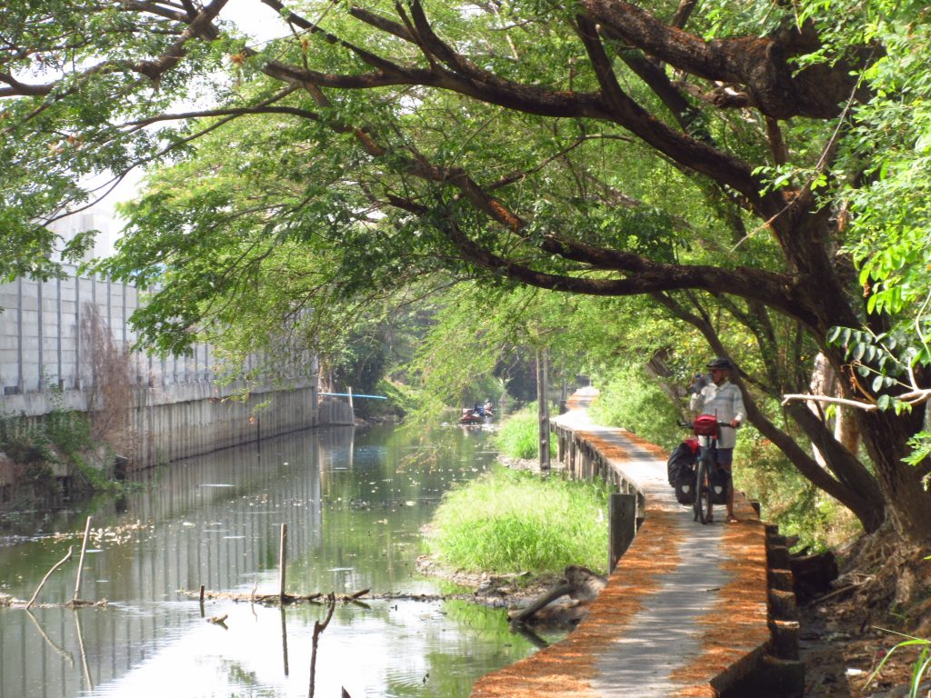 Als wir in Bangkok einfahren, führt die Strecke lange Zeit an kleinen Kanälen entlang. Es ist hier eigentümlich ruhig und hin und wieder muss man anhalten, um Gegenverkehr durchzulassen, ohne dabei in den Kanal zu fallen 😀 Ansonsten ist es einfach ein riesiger Moloch .. Wir haben unsere Unterkunft nochmal gewechselt und sind dazu nochmal aufs Rad gestiegen..Stressig, Stau, Gestank, Hitze..das Rad wird jetzt nur noch in einen Karton gepackt und wir lassen uns zum Flughafen kutschieren..