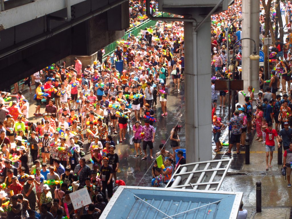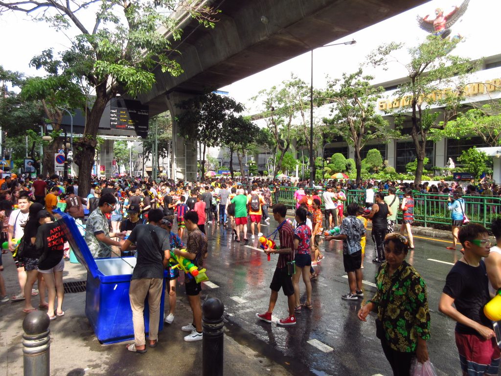 Und hier noch ein paar Songkran-Impressionen, nach 2 Minuten hatten Max und ich jeder mindestens eine Eimerladung Wasser kassiert 😀 Aber so lässt es sich im heißen Bangkok gut aushalten, nur im klimatisierten Sky train war es ziemlich frisch^^