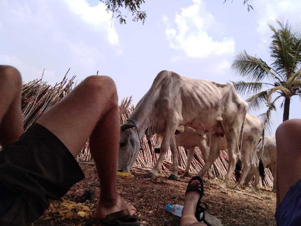 Die Fahrt bis zur Grenze ist landschaftlich recht schön und hügelig (das geht meistens Hand in Hand ^^), wir fahren an den Kardamom & Elefantenbergen vorbei. Unsere letzten Riel investieren in Zuckerrohrsaft und dann geht’s an den Grenzübergang, unerwartet easy und sehr ruhig, klein und ländlich. Auf der thailändischen Seite kleben extra überall „No Tips“ Schilder, ein Verbot, an das man sich doch gerne hält 🙂