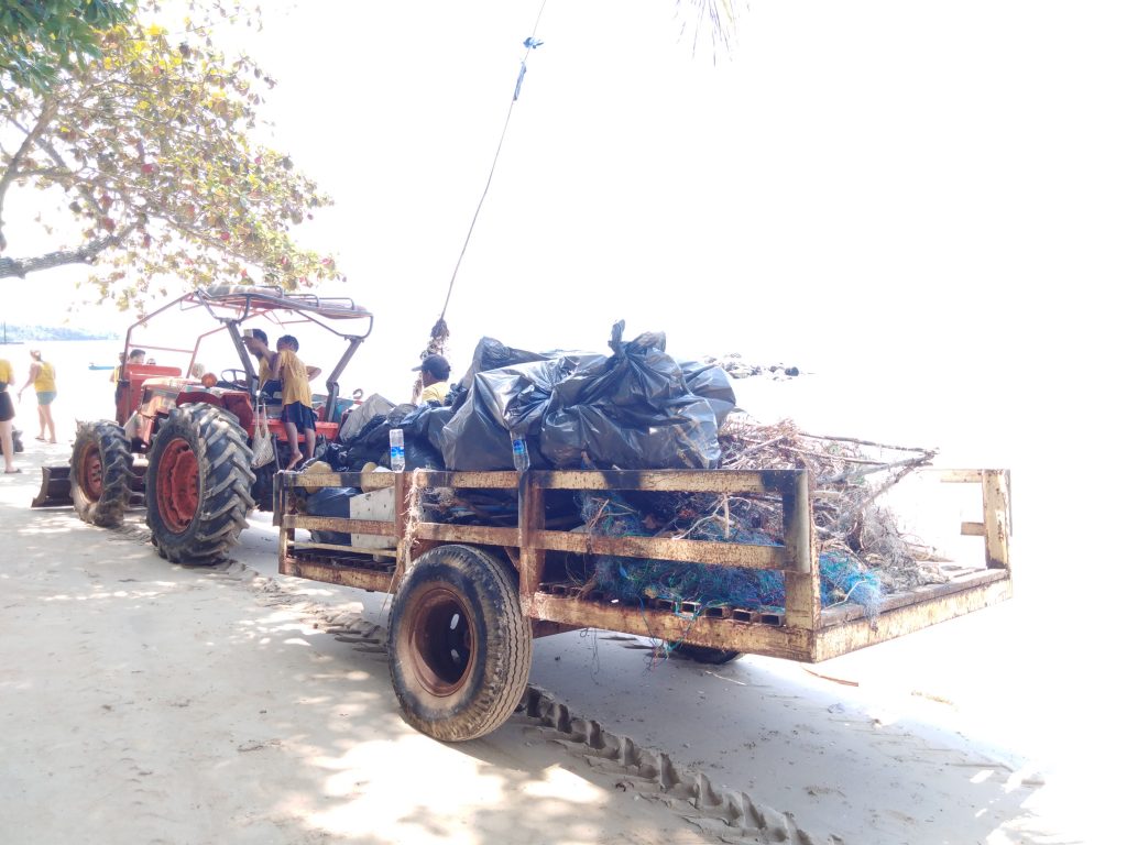 Auf Koh Mak haben wir eine chillige kleine Hütte direkt am Meer. Hier wohnen wir zusammen mit unzähligen kleinen Geckos und lauschen ihrem leisen Gemecker 🙂 Wir bleiben 10 Tage und schnorcheln und faulenzen hauptsächlich. Einen Samstag gehen wir zu einer „Trash Hero“ Aktion, hier wird Müll an einem der Strände gesammelt, die nicht von einem Resort okkupiert sind.. Zur Aktion kommen viele Touristen und einige Einheimische (ca. 15 Leute). Nach 1.5 h sammeln ist ein ganzer Traktor-Anhänger voll mit Müll, es waren 350 kg (50 kg nassen Sand muss man bestimmt abziehen..) und laut Veranstalter eher eine „kleinere Menge“. Viele Plastikflaschen, Seile und Netze und jede Menge kleiner Schnipsel von diesen Styropor-Essensverpackungen.