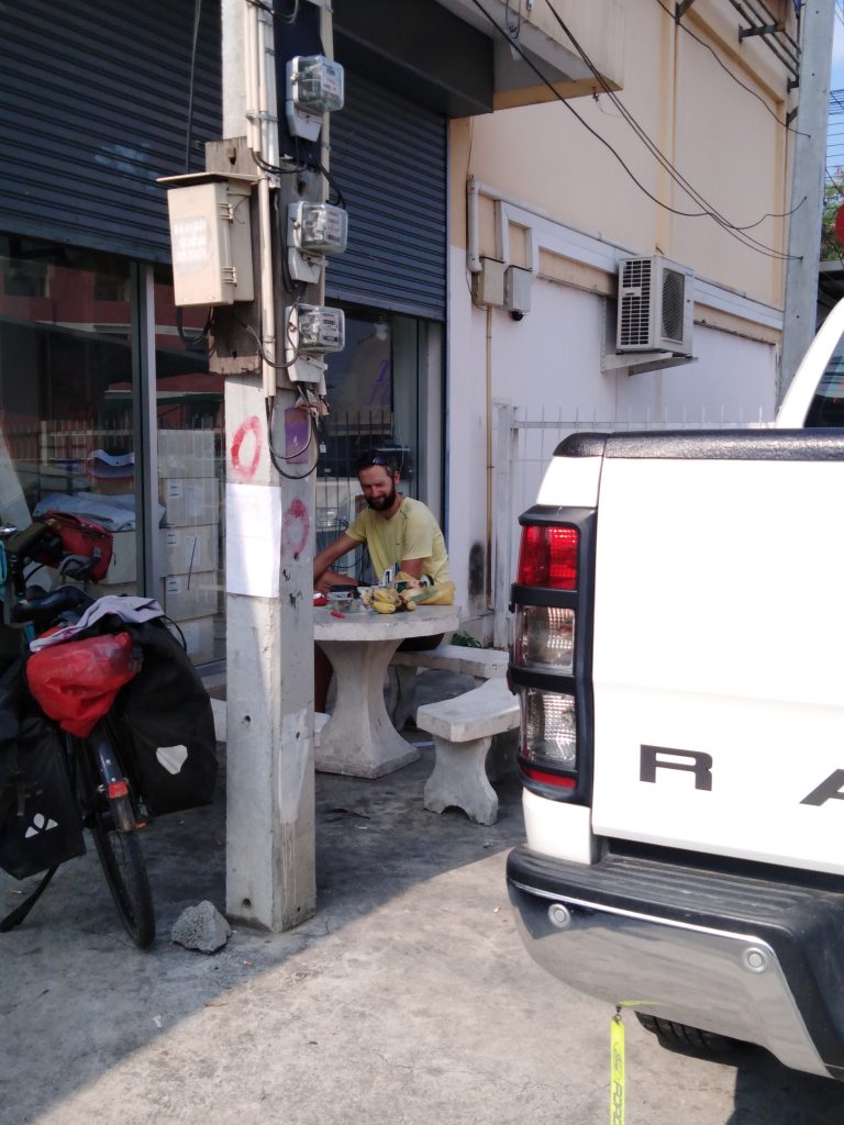 Auf der Fahrt nach Bangkok übernachten wir 2 mal bei Warmshower-Gastgebern (wobei eines davon einfach ein Motel ist, in dem wir ein Zimmer umsonst bekommen :)). Ansonsten suchen wir uns Unterkünfte (hier heißt es immer hochtrabend „Resort“), zelten scheint unmöglich zu sein (zu bebaut, oder eben Plantagen).