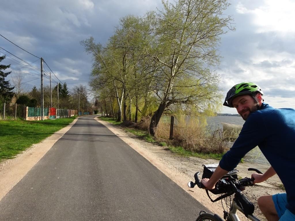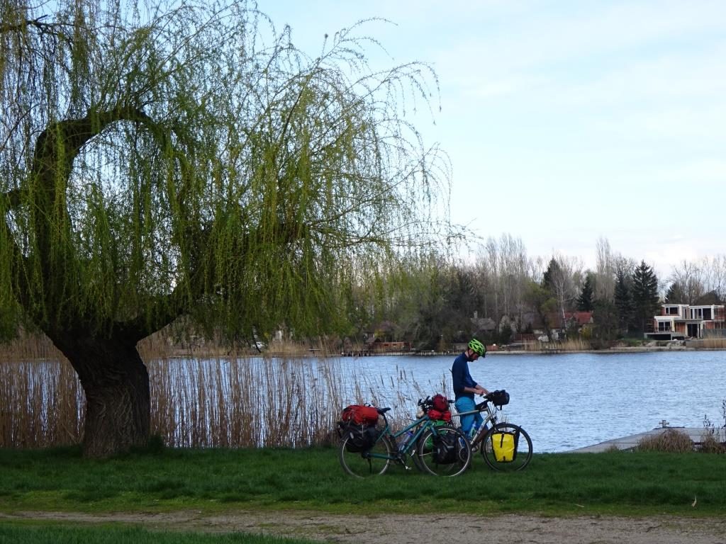 Am nächsten morgen gings dann gegen halb 10 wieder auf die Räder und weiter die Donau entlang.Wir fahren ca. 1h, bis wir halbwegs aus Budapest raus sind. Hochmotiviert und gut ausgeruht radeln wir durch die Gegend, die Straßenlage zumeist gut. Meist Radweg, links Einfamilienhäuser, rechts ein Donauarm..einige Straßen durch ruhige Siedlungen.. es lässt sich gut fahren und am Ende des Tages haben wir unseren Campingplatz gefunden, zwischen Anglern und ungewohnten Wohnwagen direkt am Donauarm..