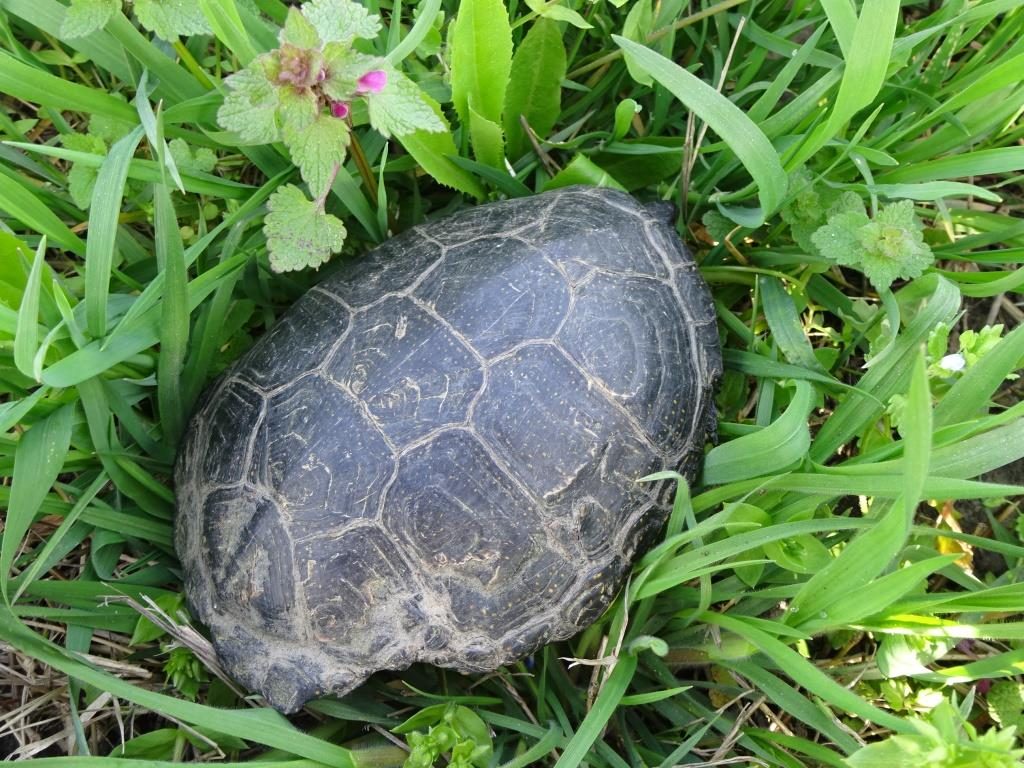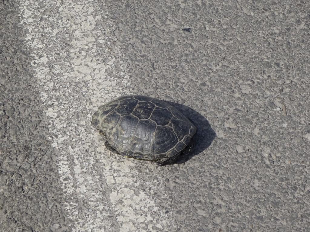 Naja wurscht. Weiter geht’s, allerdings umfahren wir den Eurovelo stellenweise, da es sich immer noch um eine Wiese handelt. An einer gut befahrenen Straße steht eine Schildkröte und versucht auf die andere Seite zu kommen, zieht jedes Mal den Kopf ein, wenn ein Auto/LKW vorbeidonnert.. Das geht ja so nicht 🙂 Wir tragen sie auf die andere Straßenseite, ein Autofahrer hat sogar auch schon angehalten und hatte die gleiche Idee.. Hoffentich merkt die Schildkröte, dass sie auf der anderen Seite ist 🙂