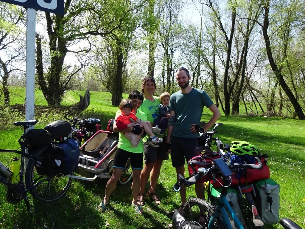 Am nächsten morgen fahren wir gegen 9 Uhr wieder los. Frühstück gibt’s nach ca. 10 km direkt an der Donau. Gerade als wir wieder losfahren wollen kommt eine Radwander-Familie vorbei, um ebenfalls Pause zu machen. Die beiden kommen „aus Katalonien“ und sind mit ihren beiden Kindern seit einigen Monaten auf Tour durch Europa..Beeindruckend wie ich finde 🙂 Während der Fahrt werden wir ständig von kleinen Bienen angeflogen, die auf uns landen und gelbe Pollen-Punkte hinterlassen.