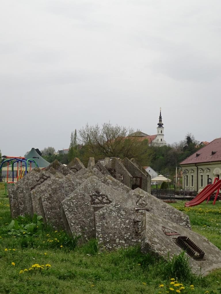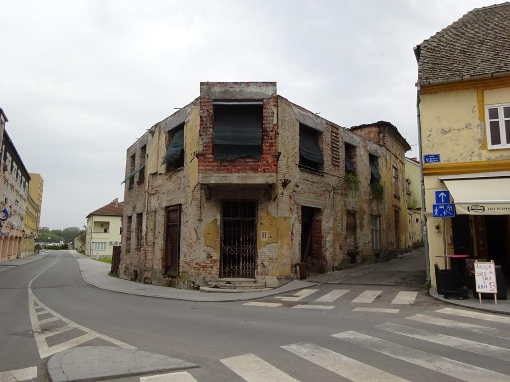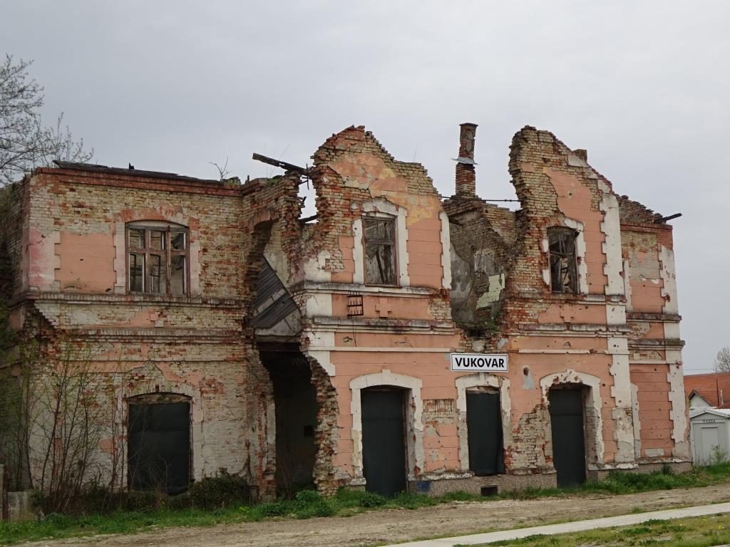 Am nächsten Morgen schauen wir nochmal bei ihr vorbei und frühstücken bei ihr. Sie tafelt ordentlich auf, alles selbstgemacht. Rührei, Ajvar, Salami, Schinken, krosse Schweinefettstückchen (eine Spezialität der Region) Marillenmarmelade und Brot. Das Angebot von Kirschlikör vor dem Frühstück lehnend wir dankend ab 😉 Das Essen hält uns bis 7 Uhr abends satt 🙂 „Just leave a small Bakshish, you know, the minimum amount, I don’t set a price“. Gegen 11:30 machen wir uns wieder auf den Weg. Fahren durch Vukovar, hier sieht man viele zerbombte Häuser oder Fassaden mit Einschusslöchern.
