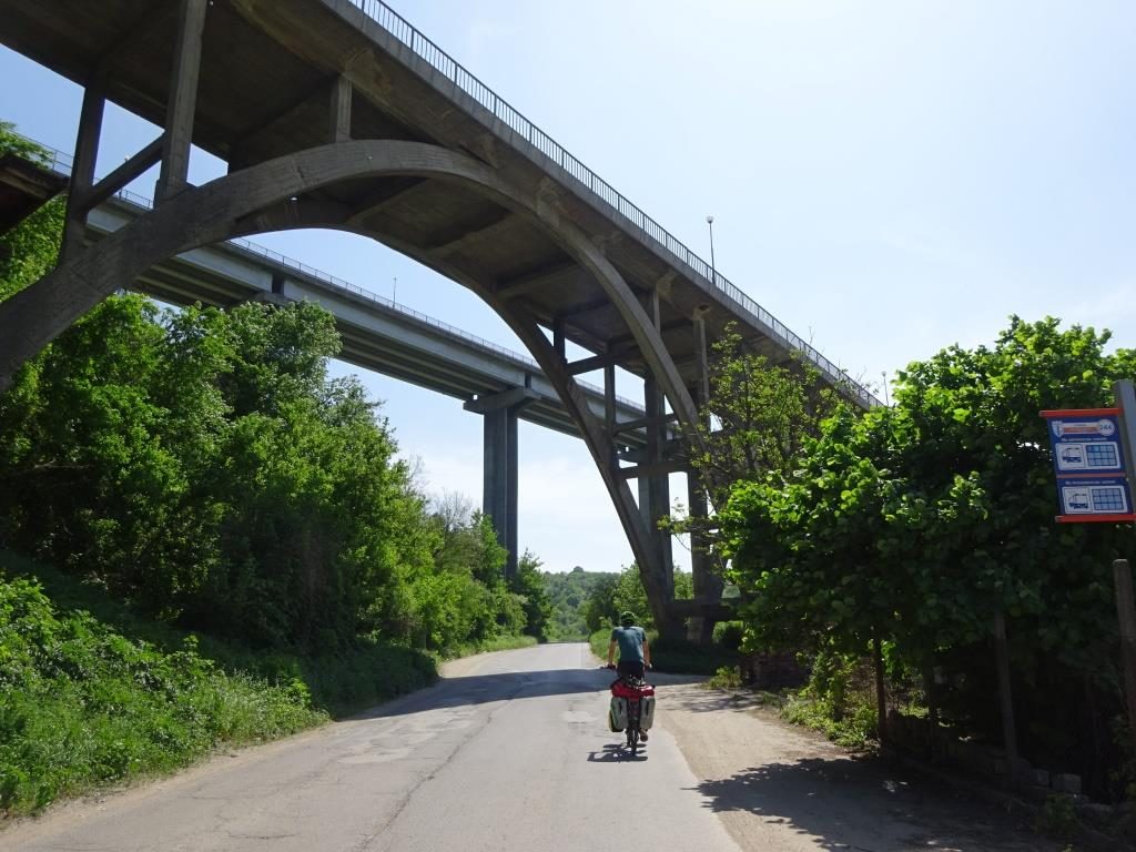 Heute geht’s dann (endlich) nach Russe, hier haben wir uns eine Bude gemietet. Morgens schlängelt sich der Weg sehr schön oberhalb eines Flusses entlang, mit sanften Hügeln zur linken. Top-Aussichten, Auf- und Abfahrten in Serpentinen. Nach 25 km müssen wir nochmal am Stück 250 m hoch.. es zieht sich und ist sehr anstrengend, dank Gegenwind. Gegen 19 Uhr kommen wir in Russe an, vollkommen platt. Ich merke meine Knie. Als wir unsere Bude suchen, „quatscht“ uns ein Herr an, ob er uns helfen könnte.. fragt wo wir herkommen und wo wir hinwollen und bietet an, dass wir morgen in seinem Antiquitäten-Laden vorbeikommen können und dann zeigt er uns schöne Plätze am Schwarzen Meer. Ja gerne 🙂