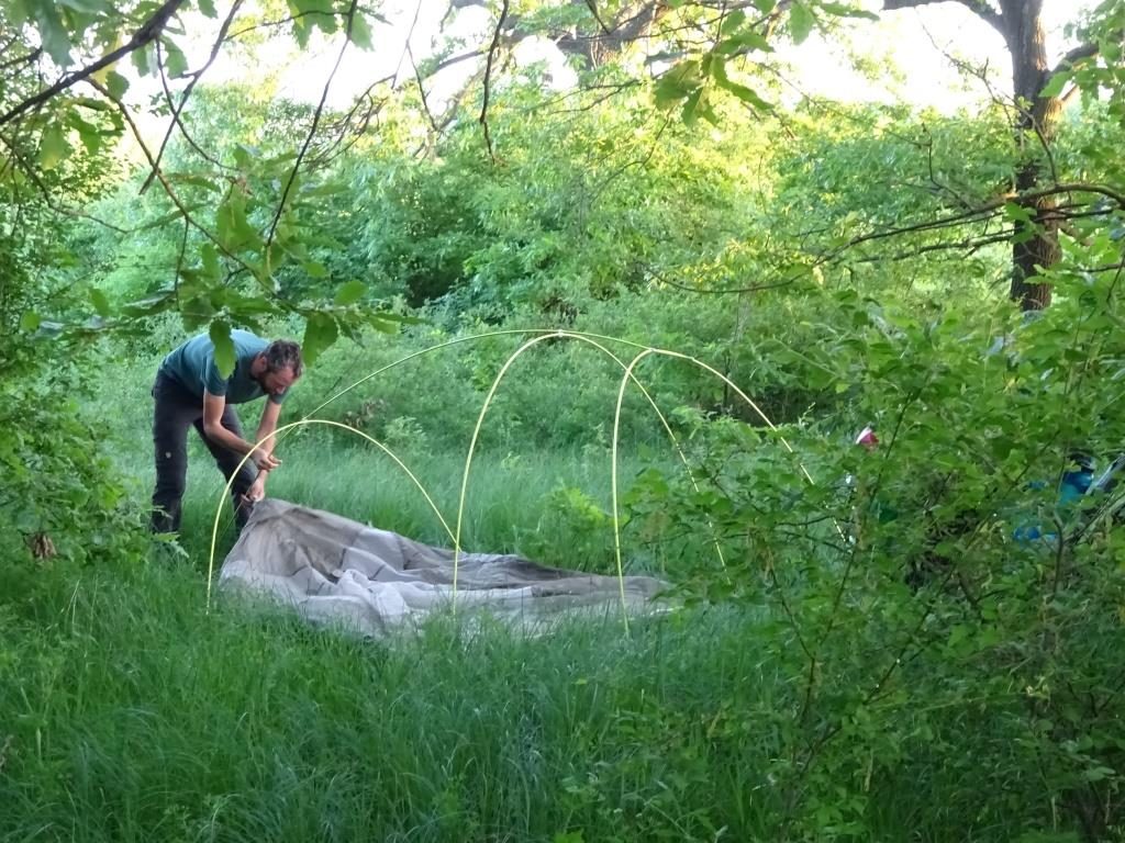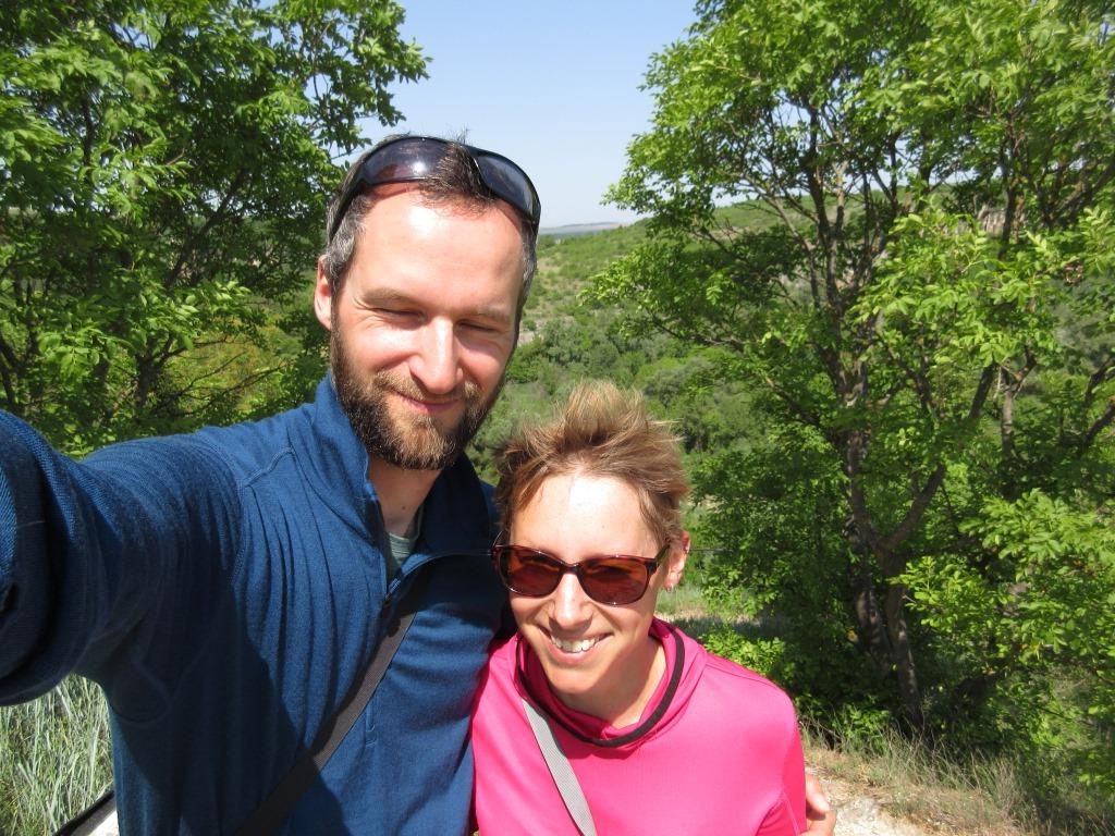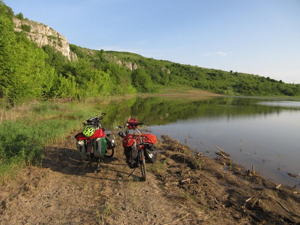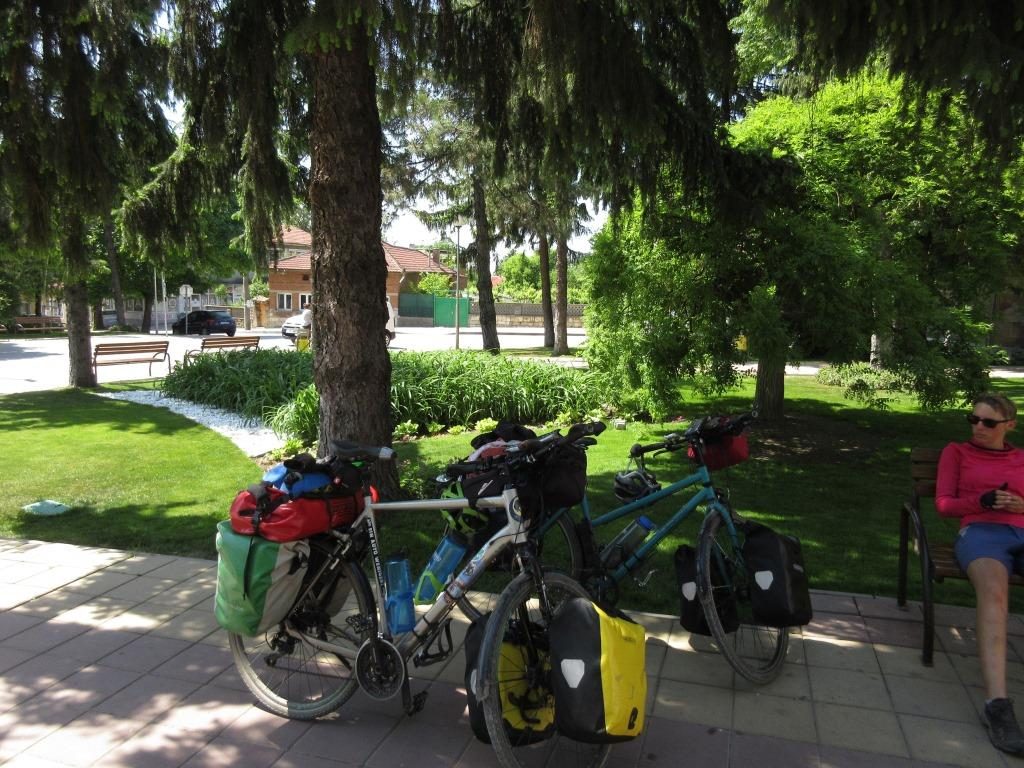 Gegen 10 Uhr fahren wir am nächsten Morgen nach Ivanovo und dann runter zur Steinkirche, die aufgrund ihrer Fresken UNESCO Weltkulturerbe ist. Ich fand das Kloster irgendwie cooler. Nach der Besichtigung fahren/schieben wir weiter, erstmal noch auf holprigsten Wegen. Mittagspause machen wir an einem top gepflegten parkähnlichen Dorfplatz auf einer Bank. Nach einiger Zeit spricht uns einer an, erzählt wild auf bulgarisch mit Brocken von italienisch, englisch und deutsch. Er war mal „Bicicletti commissaire“ – häh? Fahrradpolizist? Achso – wohl Schiedsrichter bei Radrennen 🙂 Er kauft sich einen Liter Bier (sein Woda, wie er grinsend bemerkt) und holt dann Fotos aus seiner Laptop-Tasche. Schon gucken wir uns Bilder von seinen Kindern und Enkeln, sowie vom Staatsbesuch von van der Bellen bei Radew in Bulgarien an, den er irgendwie fotografiert hat. Witzig. Die Fahrt geht weiter, für ganz kurzer Zeit auf der Hauptstraße, aber das ist echt zu stressig (obwohl einigermaßen flach). Wir nehmen dann doch die hügelige Straße über die Dörfer. Finden einen schönen Zeltplatz am Feldrand umgeben von Bäumen. Nachts heulen wieder die „Wölfe“, man weiß Bescheid 😀