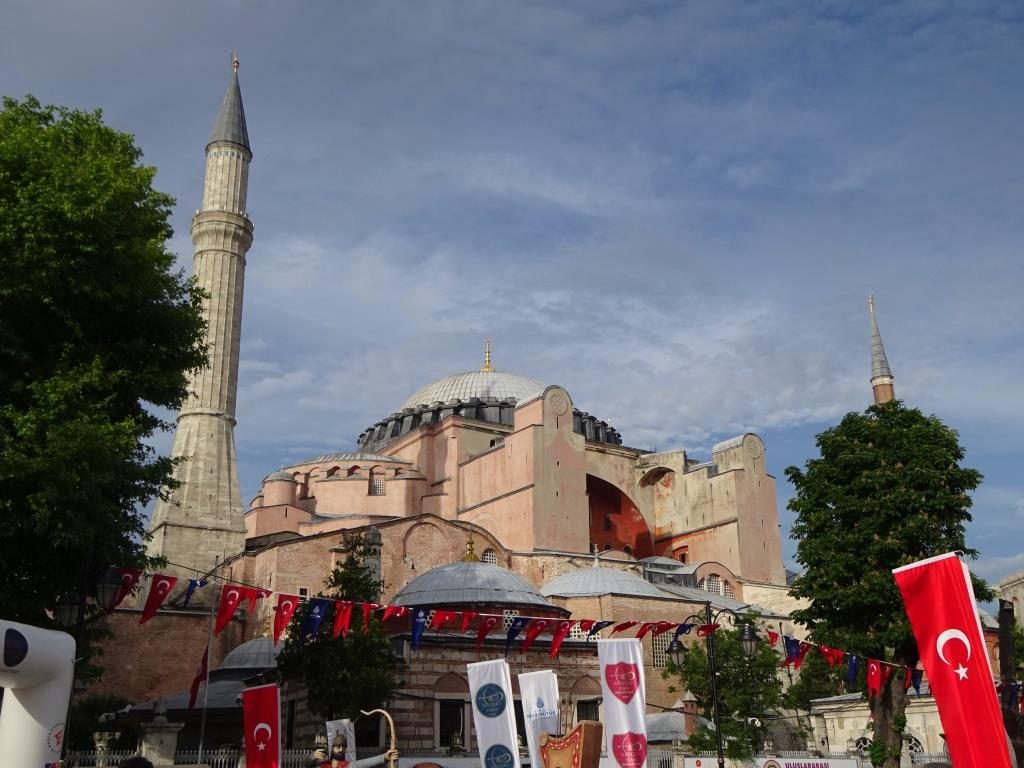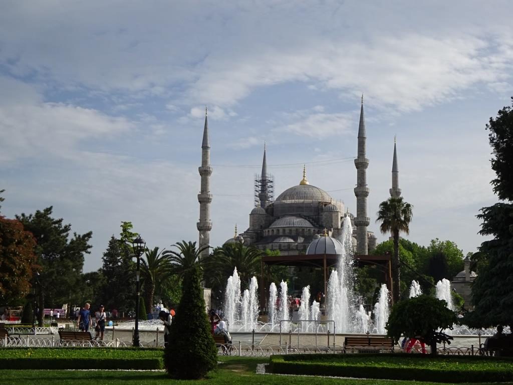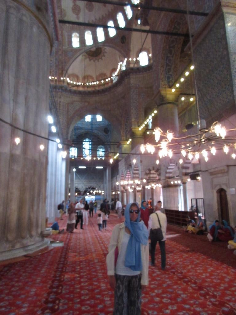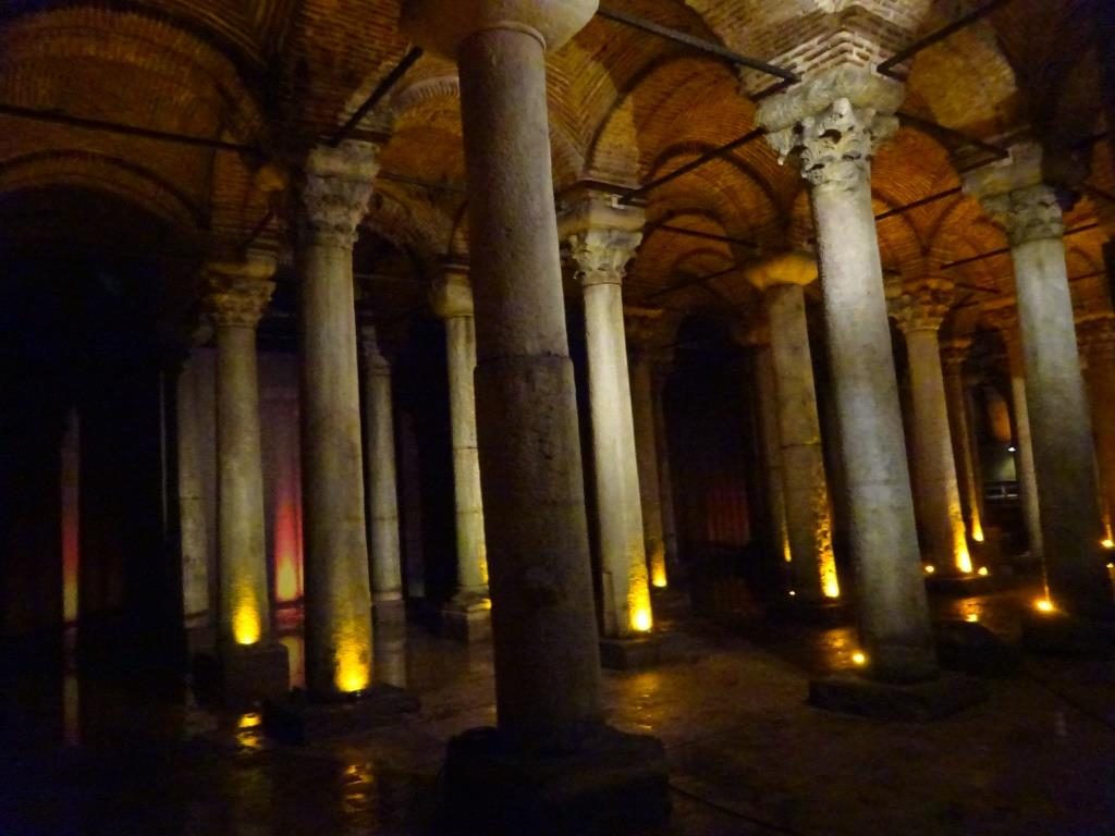 eine unterirdische Zisterne aus dem 3. Jahrhundert, die Hagia Sofia (eine Kirche, die seit 537 n. Chr. von vielen Religionen genutzt wurde und sämtliche Erdbeben in Istanbul seitdem überlebt hat) und die blaue Moschee (hier werden direkt Kopftücher und Röcke (auch an kurzhosenbeinige Männer^^) gereicht).