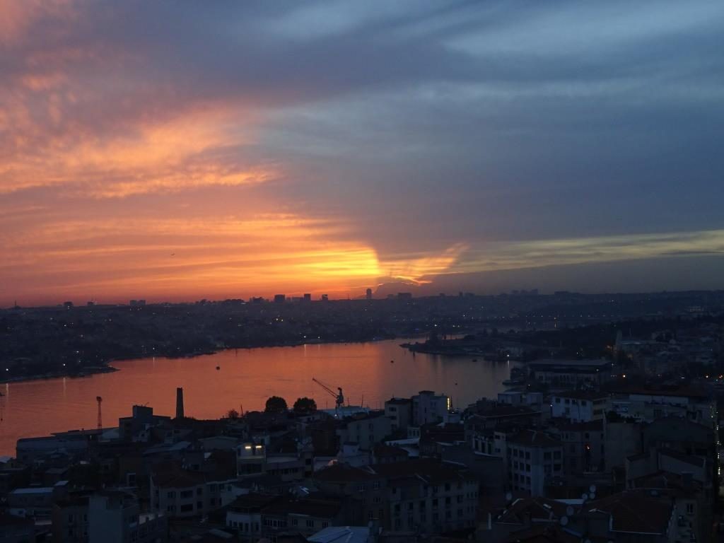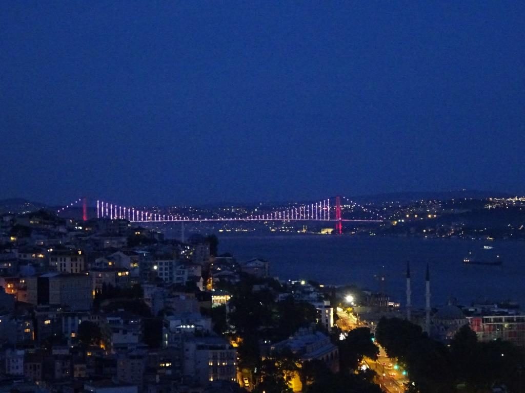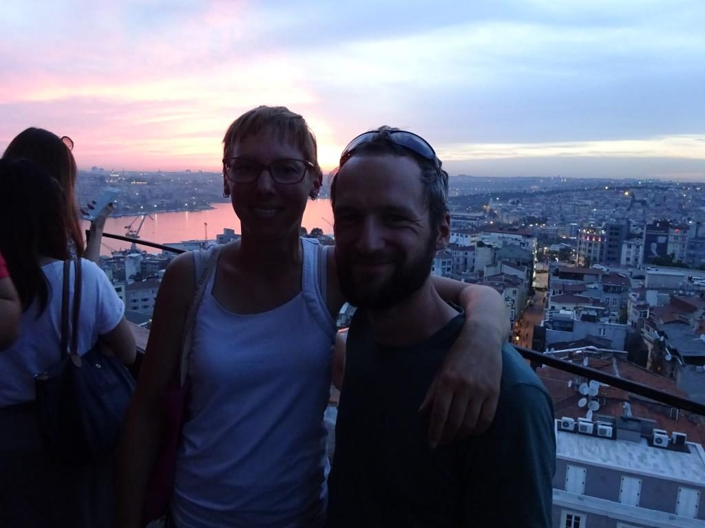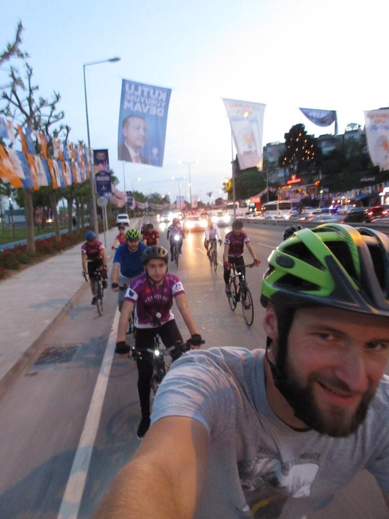 Am nächsten Tag treffen wir uns mit Ahmet, einem der Radler vom Dienstag. Er will uns einen Radladen zeigen, in dem wir die Räder durch checken lassen können. Wir verbringen einen Großteil des Tages zusammen, trinken Kaffee und Çay, sind einige Zeit beim Radladen, wo unsere Räder live überarbeitet werden, während es eine neue Runde Çay gibt. Vorher und nachher lustiges fahren im Istanbuler Verkehr, einfach fahren, es ist alles immer sehr dynamisch, aber freundlich, gehupt wird viel, aber eher so „Achtung, hier komme ich“. Danach verabschieden wir (nach einer Fährfahrt auf die asiatische Seite von Istanbul) einen weiteren Radler, der anlässlich des Atatürk-Feiertags am 19. Mai innerhalb von 2 Tagen von Istanbul nach Samsun fahren möchte ca. 740 km, Schlaf hat er nicht eingeplant ^^ – Gute Fahrt :). Abends machen Max und ich uns noch auf zum Galata-Turm für einen Blick über Istanbul. Kurz vor der Schließung schaffen wir es noch hoch und sind nach ca. 10 Minuten Touristen-stapeln fast alleine oben – Schön!