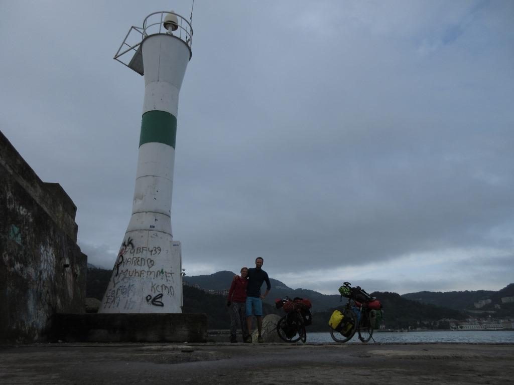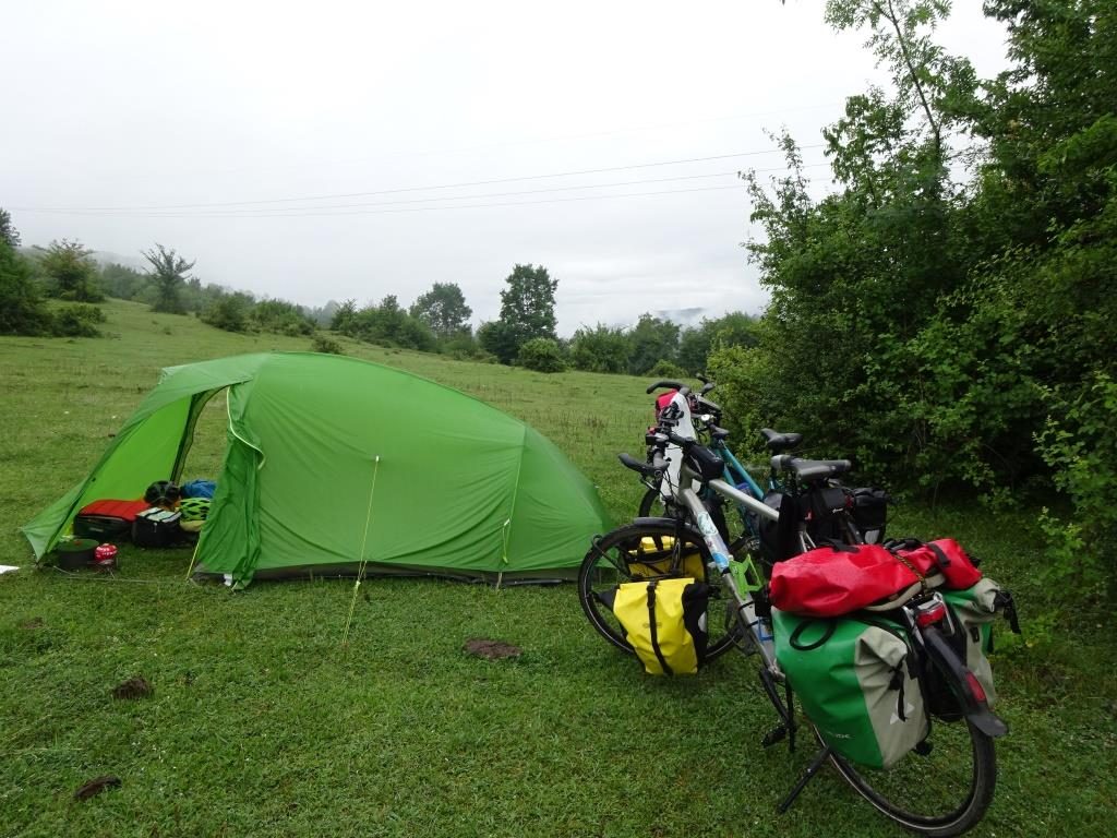 Vor der endgültigen Abfahrt machen wir noch ein Abschiedsfoto mit den Rädern am Leuchtturm und dann geht’s wieder den Berg hoch, zurück durch den Tunnel nach Bartin. Ab da wird der Weg dann richtig schön, eine kleine Landstraße über die Dörfer mit wenig Verkehr und wenigen Höhenmetern. Wir knacken kurz vor Feierabend noch die 3000 km und finden dann gegen 19 Uhr ein Zeltplatz auf einer Kuhweide (ohne Kühe, die kommen erst morgens vorbei).