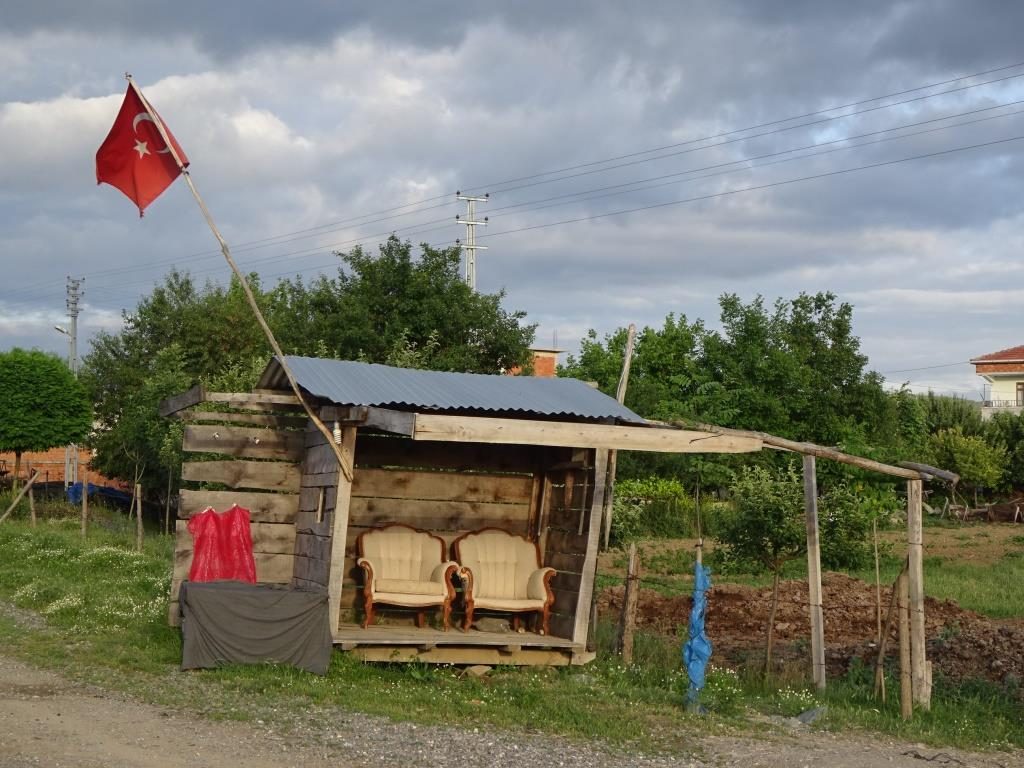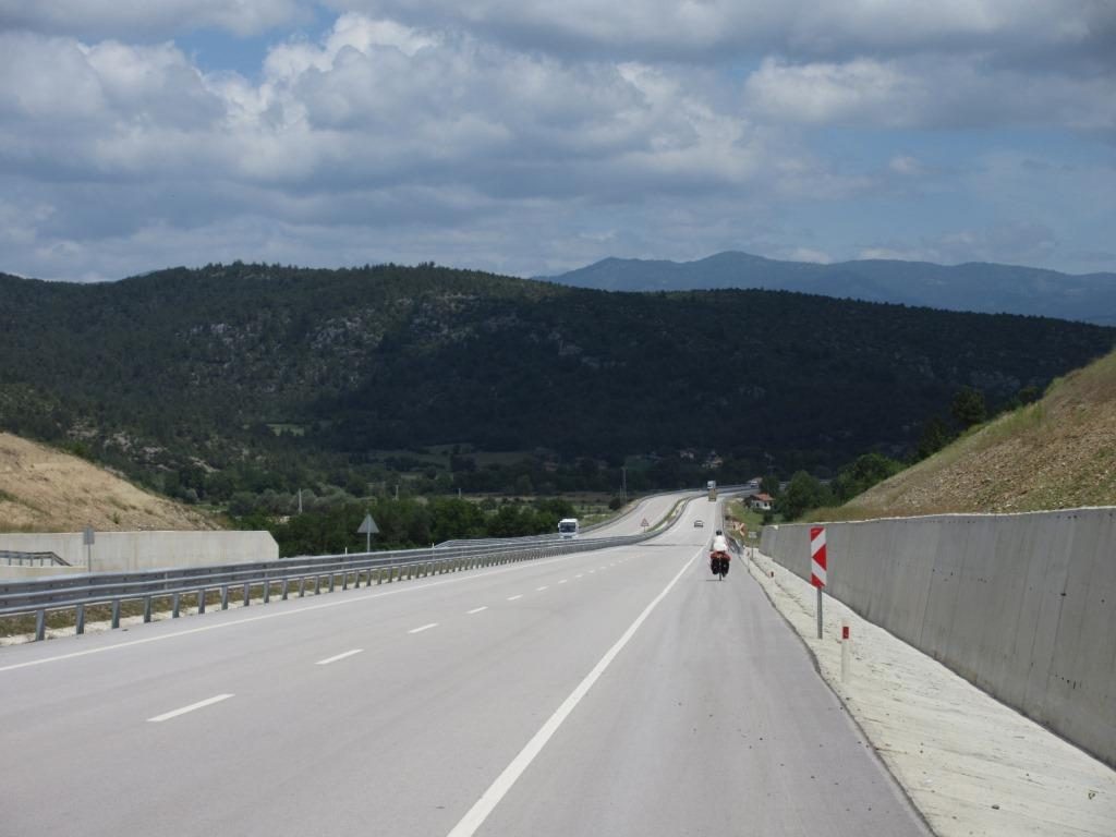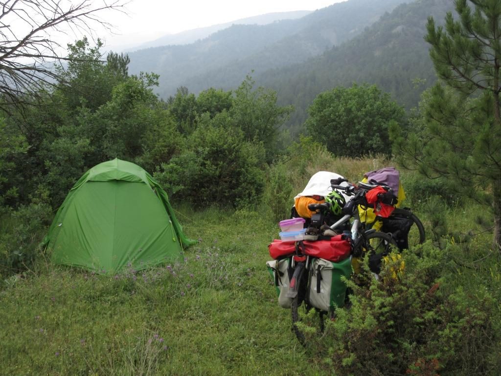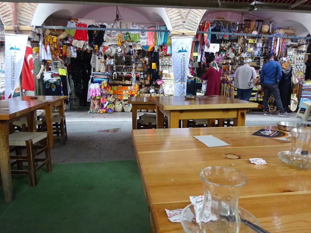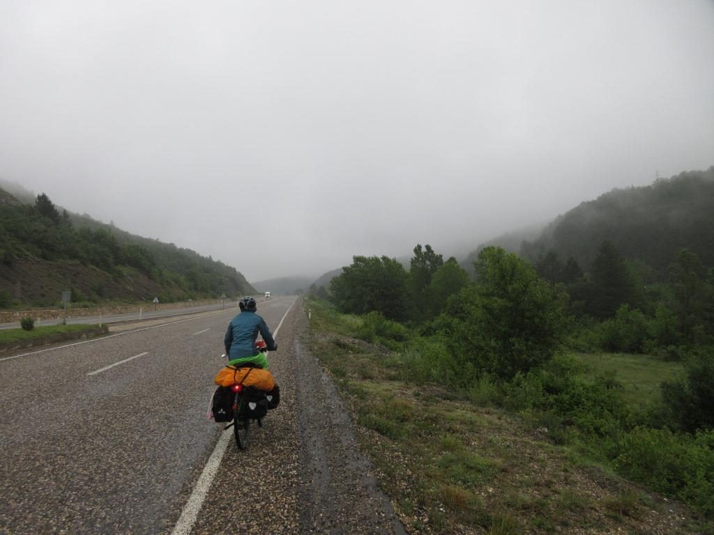 Nachts und morgens regnet es dann und mit etwas depressiver Stimmung geht es nach einem Çay dann auf den erstmal höchsten Punkt (1240 m) hoch. Als militante Nichtraucher haben wir uns gegen ein Frühstück in der Tankstelle entschieden und um Gepäckgewicht zu sparen auch keine Milch gekauft.. Oh oh.. auf den nächsten vielen Kilometern gibt es aber keine Milch zu kaufen und so gibt es nur Nüsse, Salzgebäck und Fertigkuchen statt Frühstück..Kühl ists hier oben, aber zum Glück klart das Wetter auf. In Kastamonu gibt’s dann Dürüm und Co., ein Optiker passt auf unsere Räder auf und wir machen einen kurzen Stadtrundgang. Danach fahren wir gemäßigt bergab und suchen uns einen Platz fürs Zelt zwischen den umliegenden Dörfern.