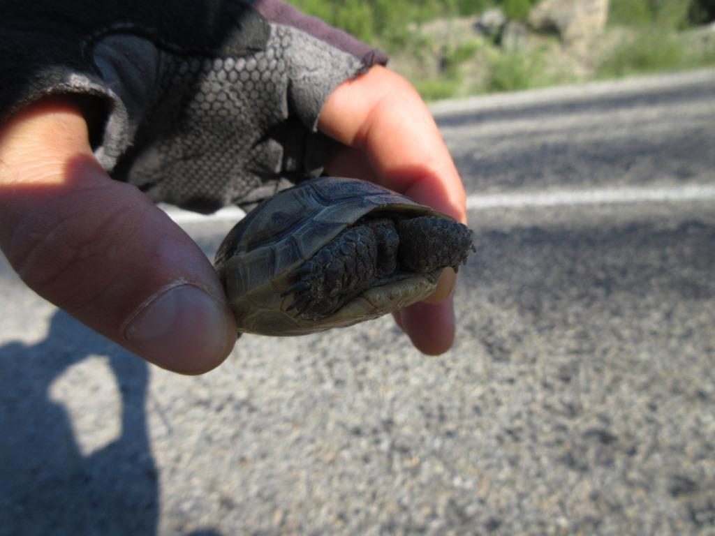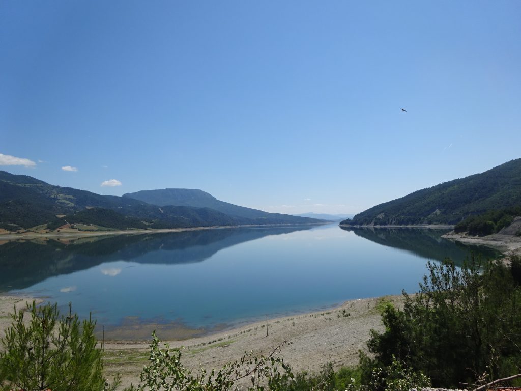 Am nächsten Morgen schauen wir uns noch die Burg von Boyabat an, sehr schön mit Aussicht über die ganze Stadt und das Tal. Als wir gegen 13 Uhr dann langsam los wollen, werden wir nach 3 m gleich wieder angehalten. Was machen wir, wo fahren wir hin.. Çay ? 🙂 Stühle und Hocker werden an den Straßenrand gestellt und wir unterhalten uns ein bisschen mit den netten Leuten, darunter auch mal eine Frau – Emine :). Einige Deutschtürken sind dabei, daher ist die Verständigung nicht ganz so rudimentär wie sonst oft :). Die Fahrt ist weiterhin entspannt, immernoch geht’s hauptsächlich leicht bergab. Wir steuern so langsam einen Stausee an, finden an der gewundenen Bergstraße einen erhöhtes Plateau mit ein paar friedlichen Hunden in der Nähe. Als wir im Zelt liegen, geht um 22 Uhr wieder der Muezzin ab, und der Hund gleich mit 😀 (hier die Soundkulisse). Vorher haben die Hunde noch irgendein anderes Tier vertrieben, was sich über die Kieshügel hochrieseln wollte.
