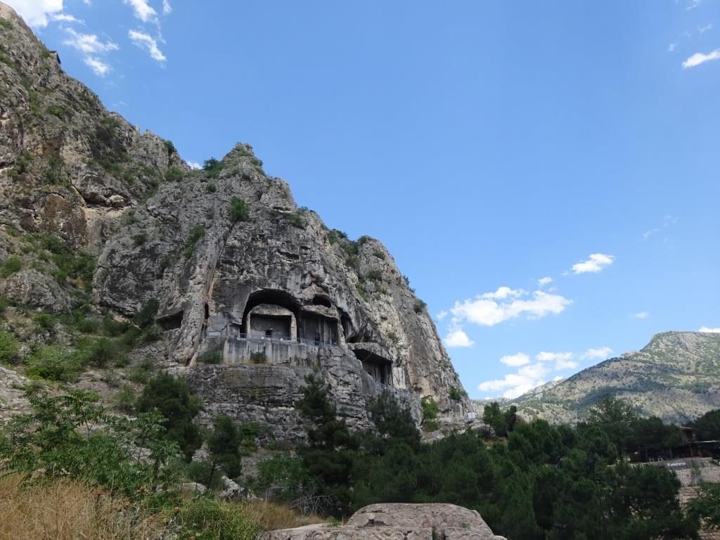 Seit Kastamonu geht die Strecke und angehem flach leicht bergab. Das nächste Ziel ist die Stadt Boyabat. Die Straße führt an einer Unmenge von Ziegelbrennereien vorbei, eine kleine Sehenswürdigkeit liegt am Berg auf dem Weg. Wir schauen uns ein in den Fels gehauenes Grab an. Leider gibt’s keine Infos dazu. War aber sehr schön. In Boyabat suchen wir uns ein Hotel und übernachten dort.
