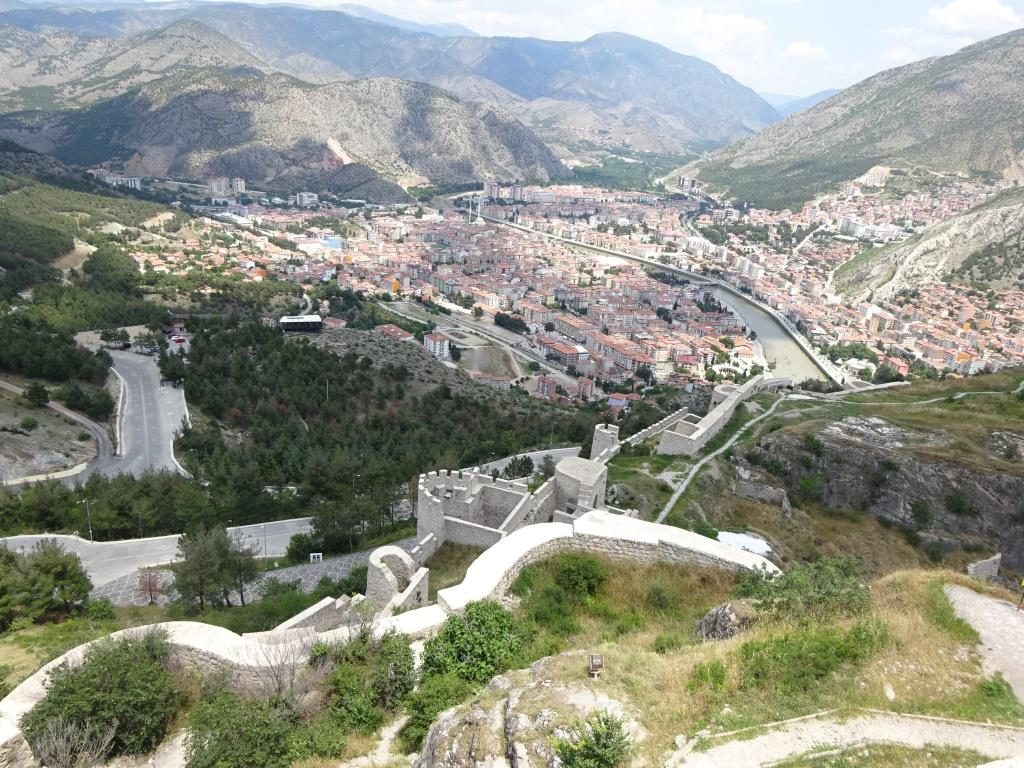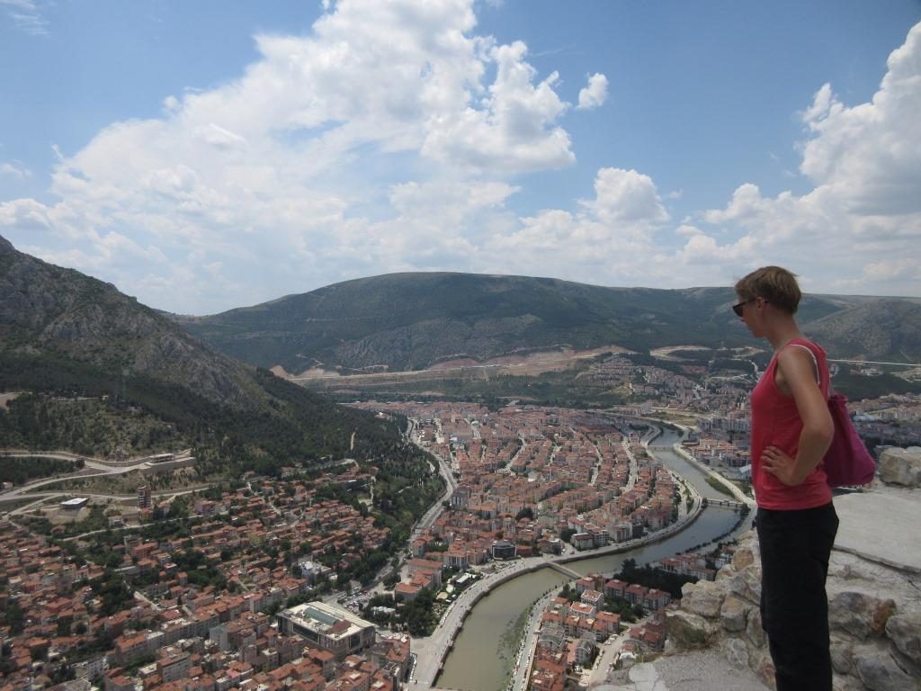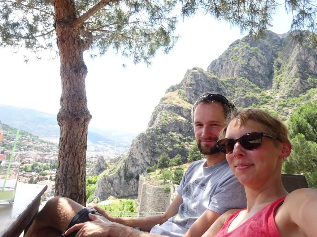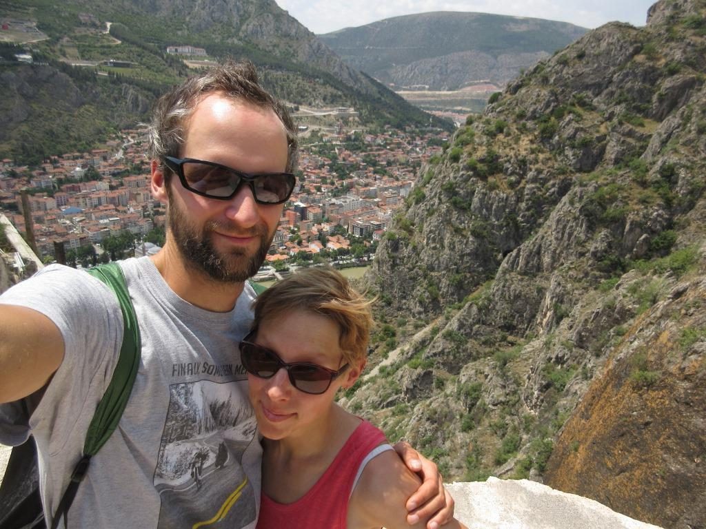 Am ersten Ruhetag erklimmen wir alte Steingräber, die direkt hinter unserer Unterkunft in den Fels gehauen sind (noch von ca. 200 v. Chr.), danach noch eine kleine Runde durch Amasya und dann wieder ausruhen 🙂 Abends essen wir in einem kleinen Gasthaus mit Balkon über dem Fluss (Yeşilırmak). Am nächsten Tag besichtigen wir noch die Burg von Amasya hoch oben über der Stadt.