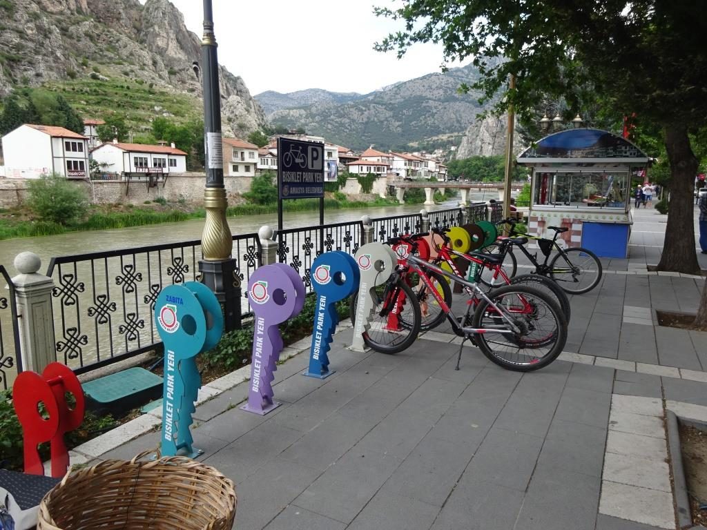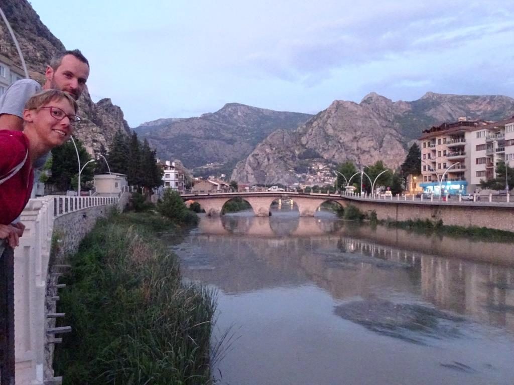 Nun steht die Fahrt nach Amasya an, gute 60 km, daher ist das Tagesprogramm recht entspannt. Eine Stunde lang geht es noch bergauf, danach nur noch entspannte Abfahrt. Unterwegs kommen wir an vielen Kirschplantagen vorbei und am Straßenrand stehen überall Kirschverkäufer. Wir halten und wollen Kirschen kaufen, bekommen sie aber geschenkt, vielleicht war auch unsere Abnahmemenge zu gering :D. In Amasya suchen wir uns ein Hotel, Hauptkriterium: Benutzung der Waschmaschine :). Wir finden eine kleineres Familienhotel und sind sehr gut aufgehoben 🙂